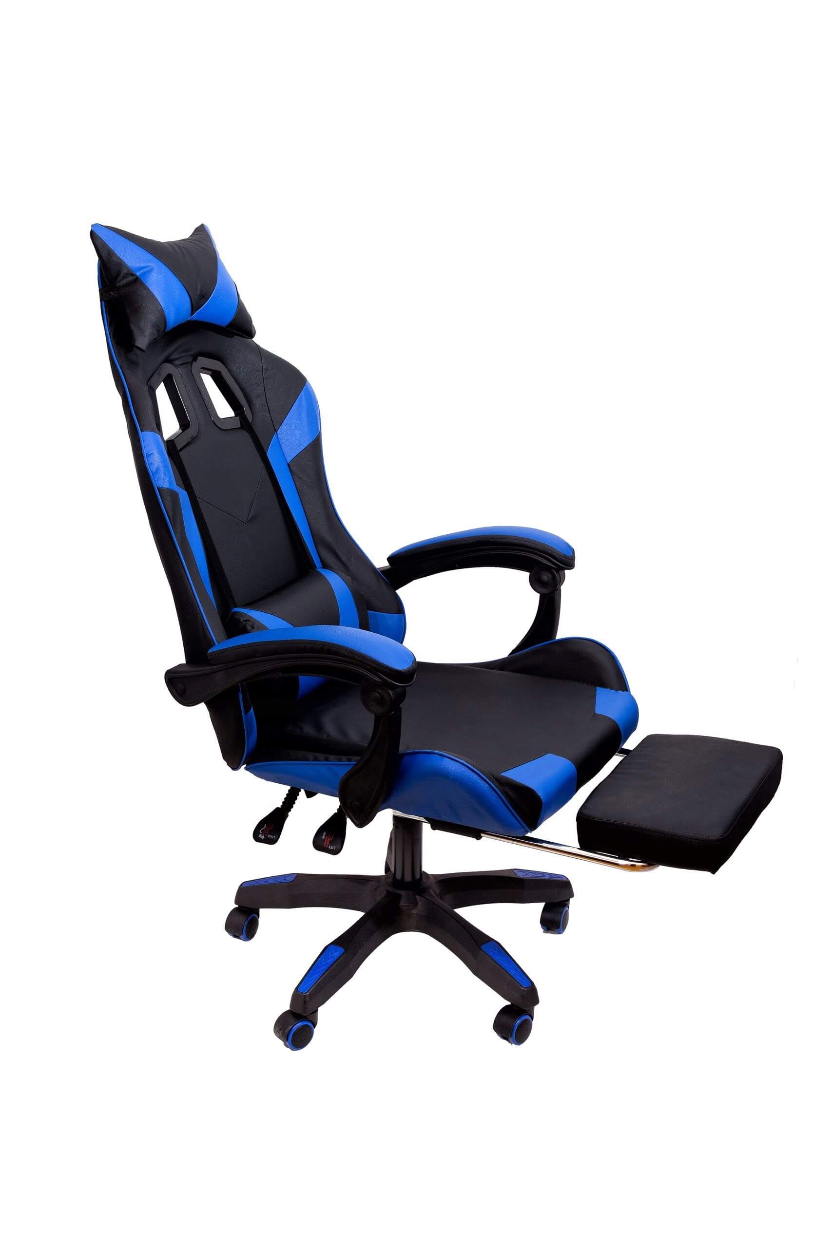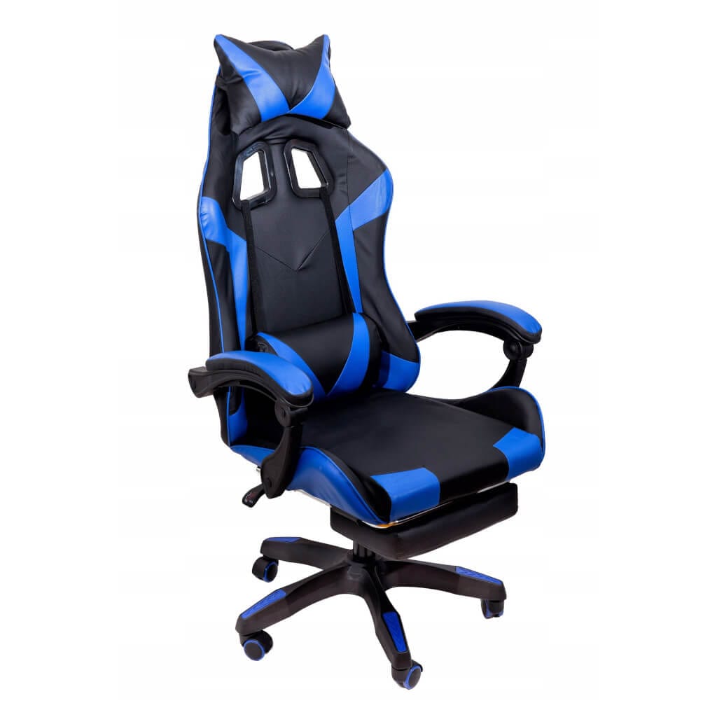 Fotel gamingowy NIEBIESKI z podnóżkiem